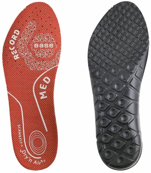 Anatómiai kiképzésű textil felületű talpbetét Dry'n Air légkeringtető rendszerrel, ESD tulajdonsággal, illatosított PU/textil, a Base Record lábbelikhez. Közepes talpboltozathoz használatos.