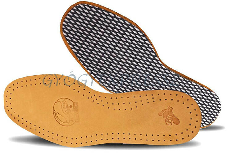 Harántemelős lúdtalpbetét. Valódi juh bőr felsőrészből és rugalmas aktív szenes alsórészből készült. A lúdtalp emelése leveszi a hosszanti izomzatra nehezedő terhelést, enyhíti a derék és hát fájdalmakat. Az alsó aktív szénréteg semlegesíti a kellemetlen szagokat. Kiszerelés: