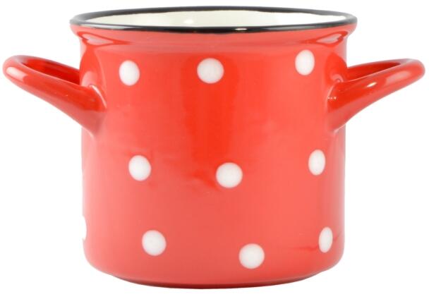 Leveses tál Dots Red 385 mlTál kerámiából, levesek feltálalására használatos. Technikai paraméterek:Űrtartalom: 385 mlMagasság: 9 cmFelső átmérő: 10 cmAlsó átmérő: 8,5 cmÁtmérő fogantyúkkal: 15 cmSúly: 335 g