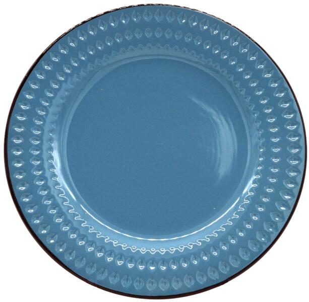 Rome kék desszert tányér -19 cm átmérő -Rombusz mintával -Barna szegéllyel