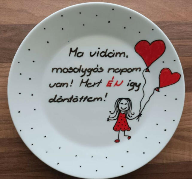 Ma vidám napom van kistányér 20 cm A tányér párban is kérhető, valamint bögrével is. Egyedi elképzelést is szívesen megvalósítok, a névre, feliratra mintára vonatkozó kéréseidet a megjegyzés rovatban tudod feltüntetni. A termék egészségre ártalmatlan porcelán festékkel készült, 50 fokig mosogatógép álló. A tányérhoz tányér tartó is rendelhető , amennyiben de