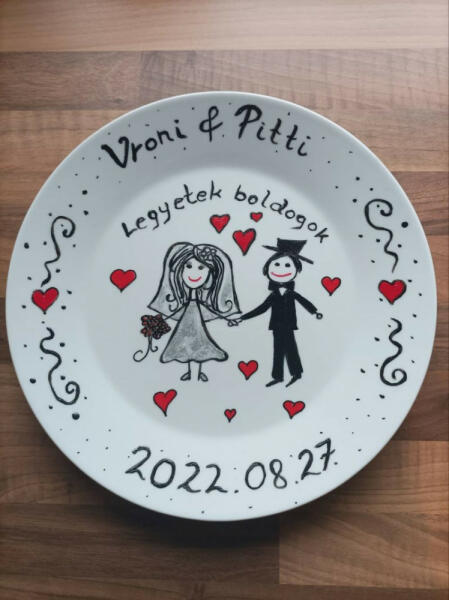 Süteményes tányér esküvőre, 27 cm átmérőjű Ha nincs ötleted mit adj az Ifjú párnak, ez a tányér biztosan angy örömet szerez majd, amiről mindig eszükbe fog jutni kitől kapták. Egyedi elképzelést is szívesen megvalósítok, a névre, feliratra mintára vonatkozó kéréseidet a megjegyzés rovatban tudod feltüntetni. A termék egészségre ártalmatlan porcelán festékkel