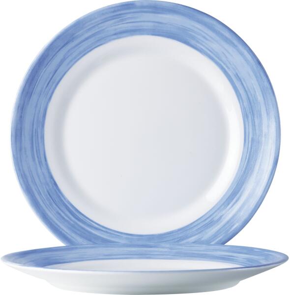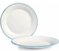 Sekély zománctányér világoskék vonallal, átmérője 17,5 cm.