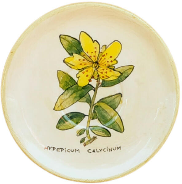 Kávés kistányér Orbáncfű Anyaga: kerámia Szín:Máz alatti festék, 1030C-on égetett mázzal bevonva. Átmérője:13,5cm Bevonat: Károsanyag mentes, fényes máz. Készült: Égetéssel 1030 C-on Anyaga: kerámia Szín:Máz alatti festék, 1030C-on égetett mázzal bevonva. Bevonat: Károsanyag mentes, fényes máz. Minden egyes darab egyedileg, kézzel készült és kézzel festett, emia
