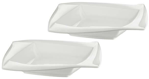2 darab Ambition Diva márkájú porcelán mélytányér modern, szögletes, kissé aszimmetrikus formával. 2 személyes dekoratív és elegáns tányér készlet. Méret: 22x3x22 cm. Dobozos. Mosogatógépben használható, mikrohullámú sütőbe rakható. Kiváló minőségi Ambition porcelán termék. Ambition DIVA kínálatunk>>