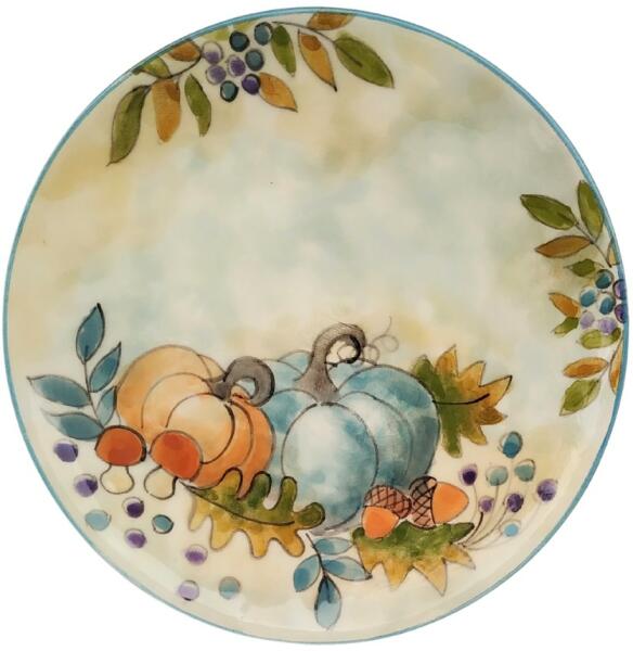 Termék adatai Reggelizős festett tányér Kék tökös Anyaga: kerámia Szín:Máz alatti festék, 1030C-on égetett mázzal bevonva. Átmérő:19,5 cm Bevonat: Károsanyag mentes, fényes máz. Készült: Égetéssel 1030 C-on Minden egyes darab egyedileg, kézzel készült és kézzel festett, emiatt előfordulhatnak apróbb eltérések, amelyek minden darabot még egyedibbé és különlegese