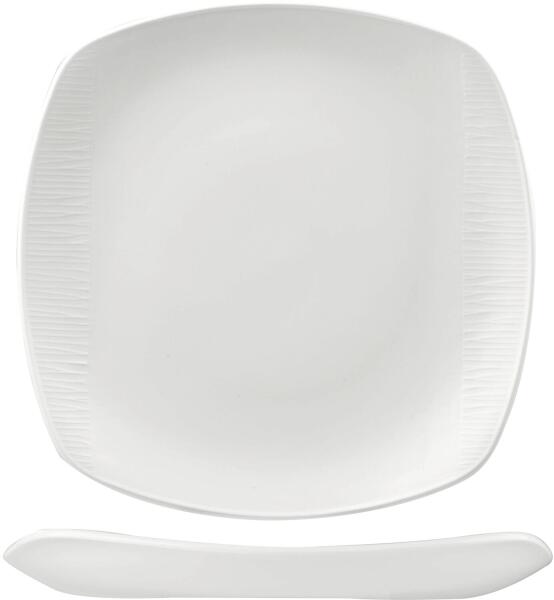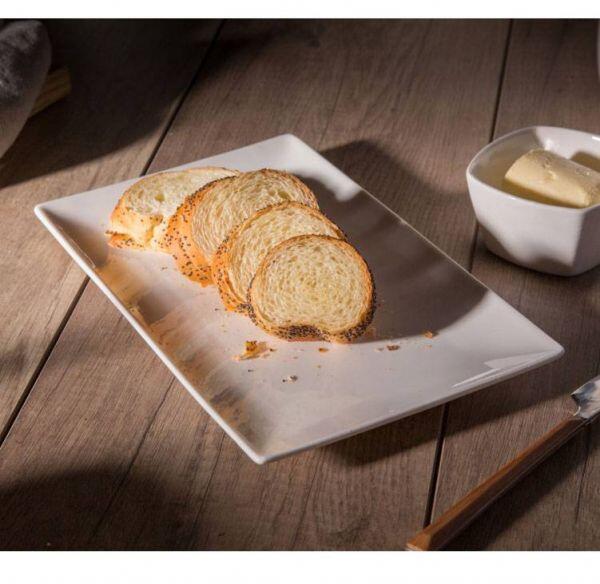Modern, szögletes formájú tányér porcelánból, mely egyedi esztétikát kölcsönöz a terített asztalnak. Különlegesen tálalhatod rajta az elkészített ételt. Kínáló tálcaként is használhatod. Kiváló minőségű porcelán. Enyhén krémes színű. Mérete: 26x16 cm. Mosogatógépben mosható. Tipp: modern szögletes formája miatt dekortálként is használható