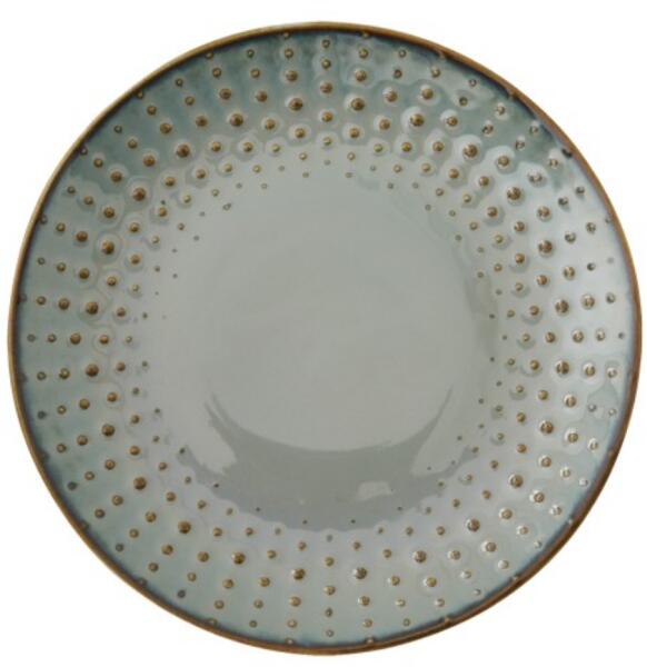Porcelán tányér a Patera modellsorozatból. A Patera az edények egyedi retró stílusú új kollekciója. A felülete optikailag kezeletlen, durva hatású. Mosogatógépben mosható.