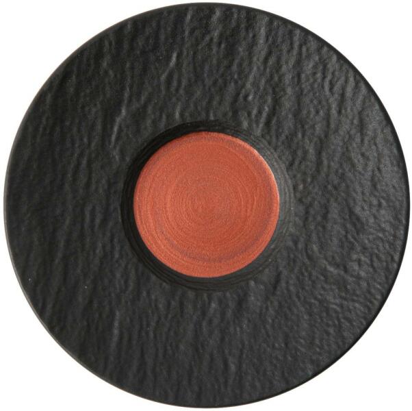Egy látványos fúzió eredménye: Manufacture Rock Glow eszpresszós csészéhez való alátét A Villeroy & Boch Manufacture Rock Glow termékcsaládja a kő hatású, fekete színű Manufacture Rock és a réz színű, kézzel festett Manufacture Glow fúziójának eredménye. A kollekció minden darabja a külső részén magán viseli a jellegzetes hasított palára emlékeztető strukt