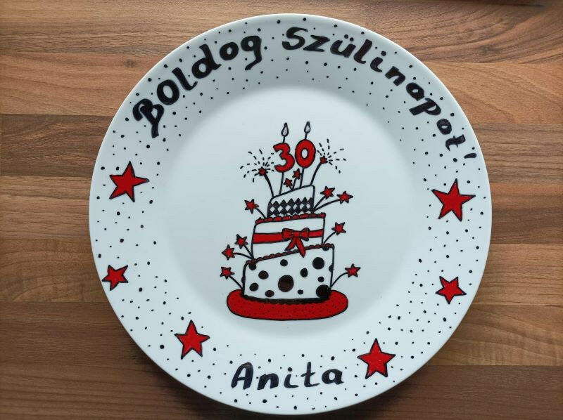 Süteményes tányér születésnapra, 27 cm átmérőjű Ajándékozz a tortával együtt egyedi sütis/pogácsás tálat. Garantált siker lesz, mivel örök emlék az Ünnepeltnek, amiről mindig eszébe fog jutni kitől kapta. Egyedi elképzelést is szívesen megvalósítok, a névre, feliratra mintára (torta/pezsgős üveg+pezsgős poharak stb. ) vonatkozó kéréseidet a megjegyzés rovatb