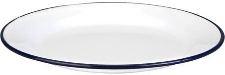 Kiváló minőségű zománcból készült tányérok, fényes fehér színűek, vékony kék vonallal.