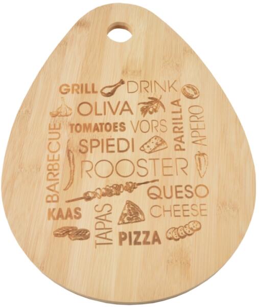 Anyaga : bambusz Mérete: 35*25*1,1 cm Súlya: 409 g Tisztítása: semleges folyékony mosogatószerrel mossa el. Kerülje a karcosodást okozó szerek és eszközök használatát. Ne áztassa! Tömör bambuszból készült kiváló minőségű vágódeszka.