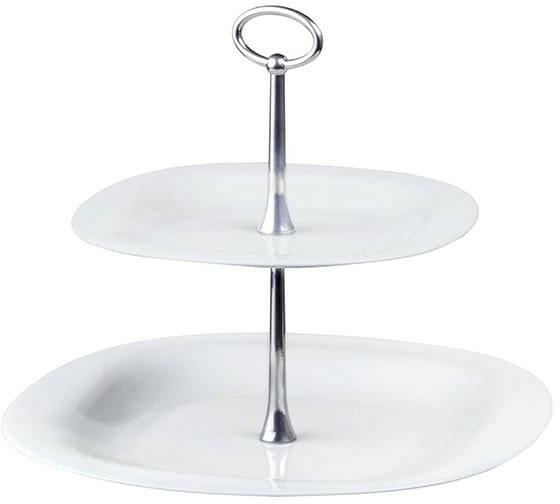 Kínálótál emeletes 2 emeletes 21-27 cm A kétszintes tortaállvány nagyszerű módja a sütemények és gyümölcsök hatékony tálalásának. A kínálótál stílusos fogantyúval rendelkezik a könnyű hordozhatóság érdekében. Anyaga: üveg, fém Méretei: felső rész 21 cm, alsó rész: 27 cm