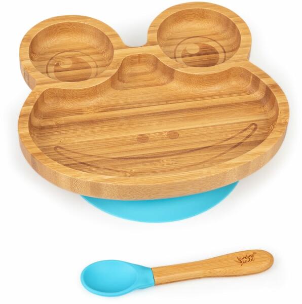 Játék és szórakozás evés közben! A Klarstein bambuswald bambusz tányérból és kanálból álló gyermek étkészlet szinte tönkretehetetlen! Erről az erős bambusz anyag és a lapostányért az asztalhoz rögzítő tapadókorong gondoskodik. A kis ínyenceknek elsősorban a tányér vidám állatka alakja fog örömet szerezni: békával, nyuszival, báránnyal, elefánttal vagy delfin