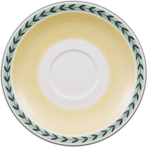 Sárga karimájú, zöld peremű alátét cappuccinós csészéhez A French Garden a nyári vidék kertjeinek hangulatából merít inspirációt. A prémium porcelánból készült kollekciót az élénk színű gyümölcsök, virágok és levelek teszik igazán élettel telivé és örök klasszikussá. Az időtlen szépségű készlet mindig kellemes látványt nyújt az étkezőben. A French G