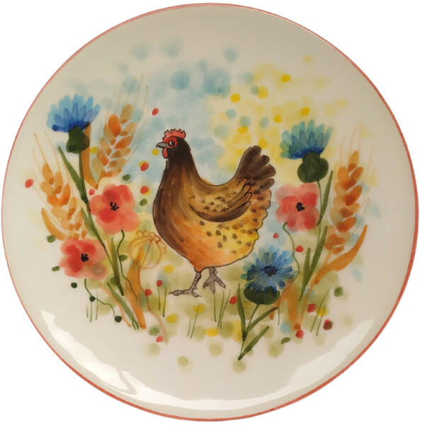 Tyúkos reggeliző tányér Kézzel festett Átmérő:19,5cm