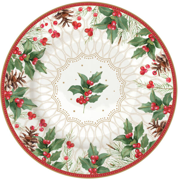 Porcelán Karácsonyi Desszerttányér 19cm - Christmas Berries Varázsold el a karácsonyi asztal hangulatát ezzel a csodálatos Porcelán Karácsonyi Desszerttányérral , amely a Christmas Berries kollekció egyik kiemelkedő darabja. A 19 cm átmérőjű desszerttányér tökéletesen illeszkedik az ünnepi étkezésekhez, és karácsonyi motívumaival felejthetetlenné teszi az ünnepi hangu