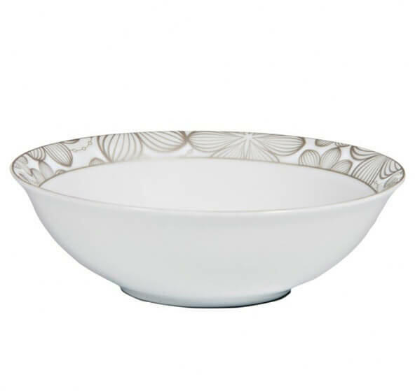 Különleges világos ezüst virág mintájú porcelán salátás tálka, akár ünnepi alkalmakra is. Mérete: 15x5 cm. Űrtartalom: 350 ml. Ambition Dream Flower kollekcióhoz tartozik még: teás/kávéskészlet, evőeszköz készlet, konyhai mérleg, különböző méretű kések, só és borstartó.