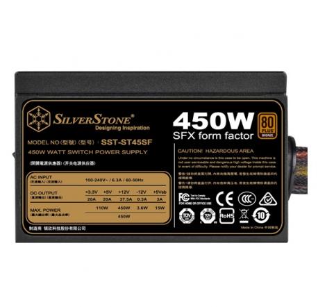 - Supports standard SFX form factor and ATX via included bracket - 450W continuous power output at 50? temperature rated for 24/7 operation (V2.0) - 450W continuous power output at 40? temperature rated for 24/7 operation (V3.0) - 80 PLUS Bronze level efficiency (82%~85% efficiency at 20%~100% loading) - Class-leading single +12V rail with 36A - Silent running 80mm fan (V2.0) - Silent running 92mm