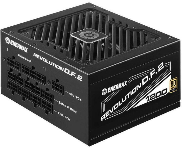 1200 W, 100 - 240 V, 47 - 63 Hz, 15-7 A, 130 W, 1200 W Enermax REVOLUTION D. F. 2. Teljes erő: 1200 W, AC bemeneti feszültség: 100 - 240 V, AC bemeneti frekvencia: 47 - 63 Hz. Alaplap tápcsatlakozó: 20+4 pin ATX, Kábelezés típusa: Moduláris. Cél: PC, 80 PLUS minősítés: 80 PLUS Gold, Zajszint: 24 dB. Termék színe: Fekete, Hűtés típusa: Aktív, Ventilátor átmérője: 12 cm. Szél
