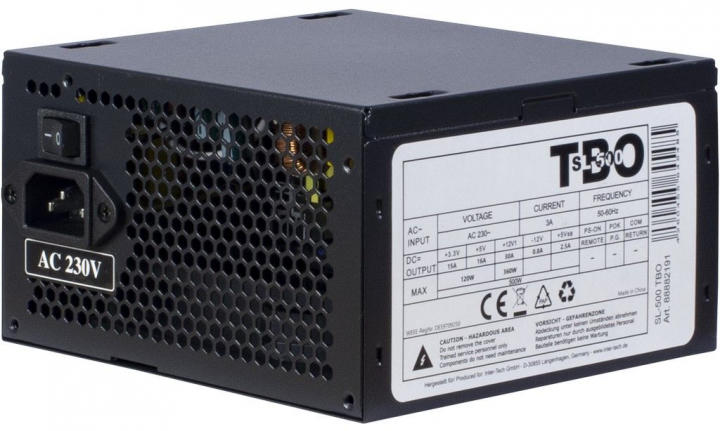 Teljesítmény: 500 Watt Ventilátor méret: 12 cm Zajszint minimum: 19 dBA Zajszint maximum: 25 dBA Típus: ATX 12V V2.3 Alaplapi 24 tűs csatlakozó: 1 db SATA csatlakozó: 3 db HDD/ODD molex csatlakozó: 2 db Floppy csatlakozó: 1 db Magasság: 86 mm Szélesség: 150 mm Mélység: 140 mm Tömeg: 1.13 kg Tulajdonságok: Védelem: OVP, SCP , OPP, OCP, UVP, OS