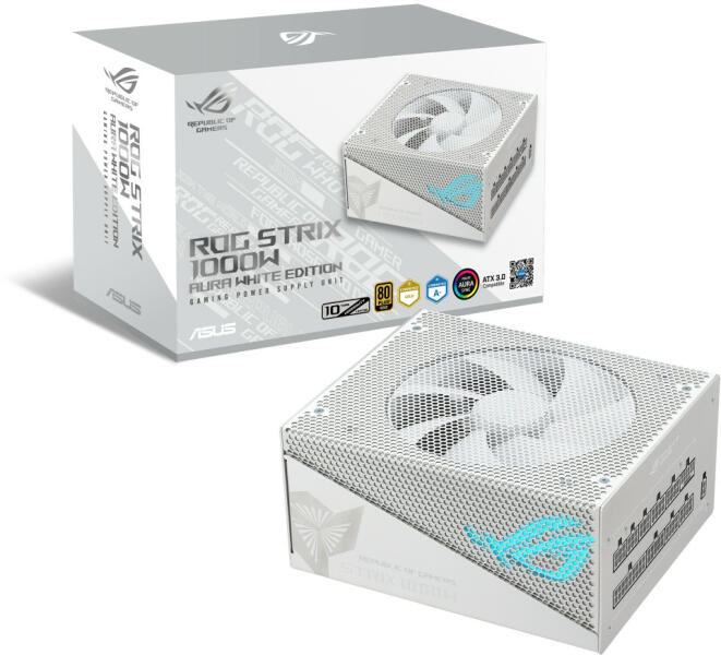 1000 W, 100 - 240 V, 120 W, 996,6 W, 120 W, 3,6 W ASUS ROG -STRIX-1000G-AURA-WHITE-GAMING. Teljes erő: 1000 W, AC bemeneti feszültség: 100 - 240 V, Kombinált teljesítmény (+3.3V): 120 W. Alaplap tápcsatlakozó: 24-pin ATX, Alaplap tápkábel hossza: 60 cm, SATA tápkábel hossza: 120,400 mm. Cél: PC, Tápegység (PSU) formai tényező: ATX, 80 PLUS minősítés: 80 PLUS Gold. Termék szín