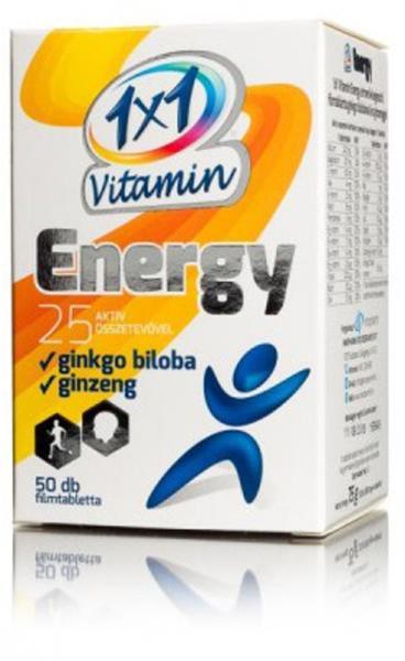 1x1 vitamin energy étrendkiegészítő filmtabletta 50 db Az „1×1 Vitamin Energy étrend-kiegészítő filmtabletta ginkgo bilobával és ginzenggel filmtablettánként 25 féle aktív összetevőt, köztük ginkgo bilobát és ginzenget tartalmaz. A C-, A- és D vitaminok hozzájárulnak az immunrendszer normál működéséhez. A ginkgo biloba hozzájárul a keringési rendszer normál műk