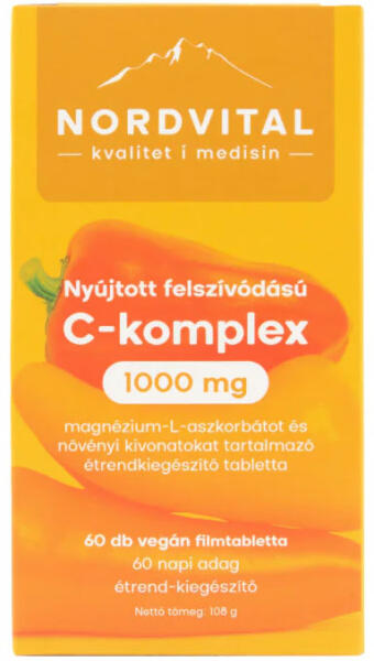 A nyújtott felszívódású filmtabletta fokozatosan szabadítja fel és adagolja a C-vitamint a szervezet számára. C-komplex termékünk a C-vitamint magnézium-L-aszkorbát formában tartalmazza, ami kevésbé savas mint az L-aszkorbinsav így kíméli a gyomrot, valamint értékes magnéziumot is tartalmaz.