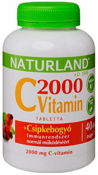 Összetevők:L-aszkorbinsav, tömegnövelő szer (mikrokristályos cellulóz), kukoricakeményítő, csipkebogyó-kivonat (Rosa canina L. ), csomósodást gátló anyag (zsírsavak magnéziumsói). Hatóanyag a napi adagban (1 tabletta):C-vitamin: 2000 mg (2500% NRV)Csipkebogyó-kivonat: 50 mg (200 mg friss csipkebogyóból)NRV= napi beviteli referenciaérték %-a felnőttek számára. Étrend-kie