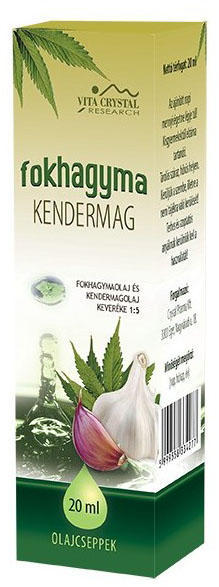 Vita Crystal Fokhagyma - Kendermagolaj csepp, fokhagymaolaj és kendermagolaj keveréke 1:5 arányban. A fokhagyma jótékony hatását több mint 200 féle biológiailag aktív vegyülete (vitaminok, ásványi anyagok, aminosavak és enzimek) adja. A kendermag nagyon magas telítetlen zsírtartalommal rendelkezik. Főbb hatásterületek: - Érelmeszesedés - Érrendszer - Koleszterin - Magas vér