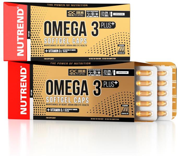 Nutrend Omega 3 Plus Softgel Caps - 120 kapszula Minőségi halolaj! Nutrend Omega 3 Plus Softgel Caps minden egyes kapszulája nagy adagban és egészséges formában tartalmaz mélytengeri halolaj koncentráltumot, omega-3 többszörösen telítettlen zsírsavat. A termék hozzáadott D-vitamint tartalmaz, mely hozzájárul az izomműködés és immunrendszer optimális működéséhez. Nutrend