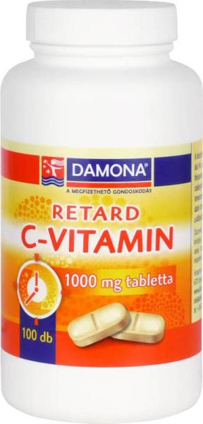 Damona C-Vitamin Retard Tabletta 100 db A C-vitamin hatékony antioxidáns, hozzájárul: az immunrendszer megfelelő működéséhez, segíti a vas felszívódását, segíti az immunrendszert a baktériumokkal és vírusokkal szembeni védekezésben, hozzájárul a normál kollagén képződéshez, és ezen keresztül az erek normál állapotának és működésének fenntartásához a normál c