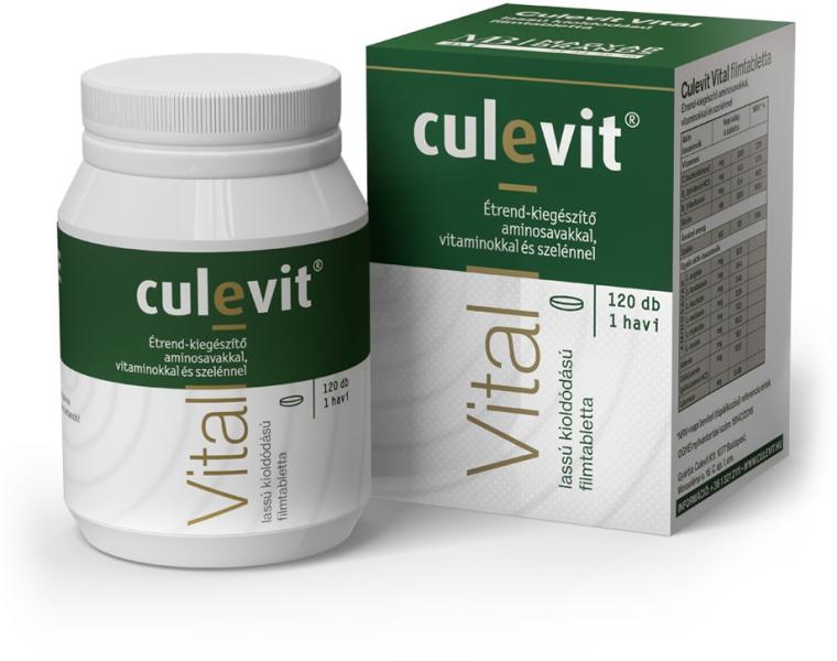 A Culevit Vital filmtabletta vitamin és ásványi anyag összetevői támogatják az immunrendszert, segítik a stressz okozta tünetek enyhítését, csökkentik az állandó fáradságot. A Culevit Vital filmtabletta olyan étrend-kiegészítő, amely azoknak a kiegyensúlyozott és vegyes táplálkozás irányelveit követő, egészséges felnőtteknek ajánlott, akik az aktív összetevők me