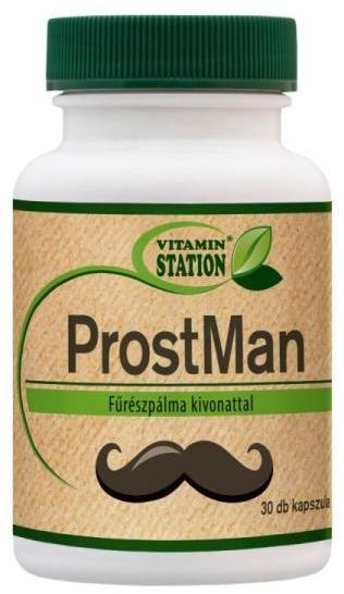 30 db-os kapszula; Vitamin Station termék a prosztata egészségéért, a prosztata egészségének őrzője. A ProstMan összetevői komplex védelmet nyújtanak a prosztatának: a fűrészpálma-kivonat segít a jóindulatú prosztata-megnagyobbodás és húgyúti problémák kezelésében, a csalánlevél-kivonat enyhíti a vizelési problémákat, a lenmagőrlemény gyulladáscsökkentő hat