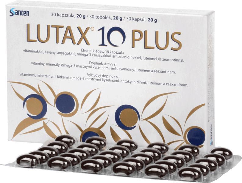 Étrend-kiegészítő kapszula vitaminokkal, ásványi anyagokkal, omega-3 zsírsavakkal, antocianidinekkel, luteinnel és zeaxantinnal. Lutax 10 Plus kapszula Tudományos eredmények alapján speciálisan tervezett és megalkotott kapszula. A C-vitamin, az E-vitamin, a réz és a cink hozzájárulnak a sejtek oxidatív stresszel szembeni védelméhez. A dokozahexaénsav (DHA) és a cink hozzájá