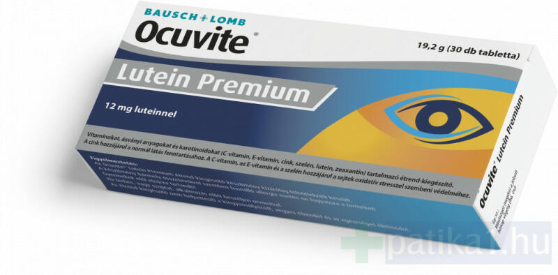 Megemelt hatóanyaggal. 12 mg luteint és 1 mg zeaxantint tartalmazó, komplex összetételű étrendkiegészítő vitaminokkal, ásványi anyagokkal. Az OcuVite Lutein Premium étrendkiegészítő tabletta 30x egy kiváló minőségű termék, melyet kifejezetten azoknak fejlesztettek ki, akik szeretnék támogatni és védeni szemük egészségét és látásuk élességét. Ez a speciális form