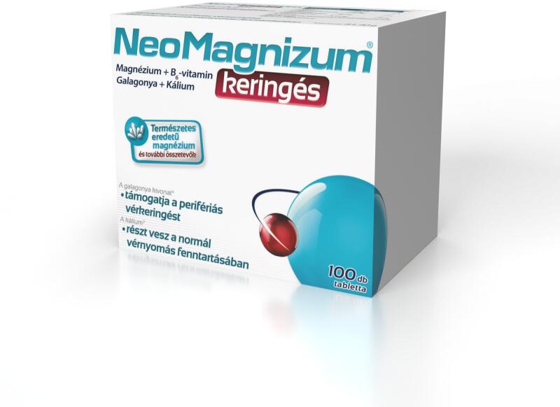 Gyártó: Modell: NeoMagnizum keringés tabletta 100 db Leírás: Káliumot, magnéziumot, galagonya kivonatot és B6-vitamint tartalmazó étrend-kiegészítő tabletta A NeoMagnizum keringés galagonya kivonat összetevője támogatja a perifériás vérkeringést és hozzájárul az oxigénellátás javításához, a kálium pedig részt vesz a normál vérnyomás fenntartásában. NeoMagnizum