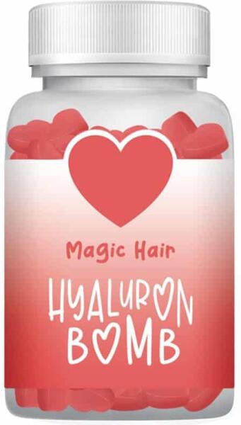 Magic Hair Hyaluron Bomb - 30 db gumivitaminA Hyaluron Bomb mangó ízű, hialuronsavat és halkollagént tartalmazó étrend-kiegészítő. Ízletes, élvezet fogyasztani 100% cukor-, szója-, mogyoró-, gluténmentes Hozzájárul a bőr normál állapotának fenntartásához Javítja a csontok és ízületek egészségét Simítja a finomvonalakat és apróbb ráncokat 2 szívecske 200 mg hialur