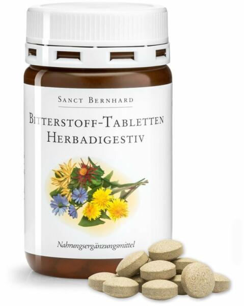 Herbadigestiv - gyógynövény tabletták természetes keserűanyagokkal az emésztésért.