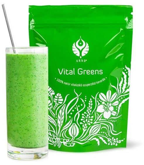 Az UKKO Vital Greens makro- és mikrotápanyagok elképesztően széles skáláját tartalmazó porított növénykeverék, Spirulinával, matchával, búzafűvel és még 5-féle gyógynövénnyel. Összetevői hozzájárulhatnak a szervezet lúgosításához, méregtelenítéséhez, az immunrendszer erősítéséhez, az energiaszint növeléséhez.