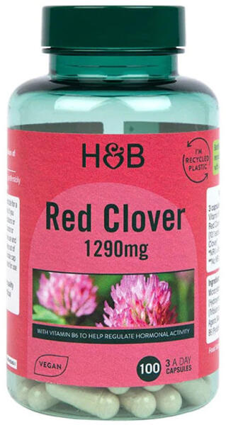 H&B vöröshere kapszula 1290mg 100 db ?B6-vitaminnal, amely támogatja az immunrendszert ?430mg vöröslóhere virágot tartalmaz ?elágazó szárak végén lévő piros virágokból készült ??vegán Természetes gyógynövény étrend-kiegészítő, vörös lóherét tartalmaz, amely a hüvelyesek családjába tartozó vadon termő növény. vadon nő a réteken egész Európában és Ázs