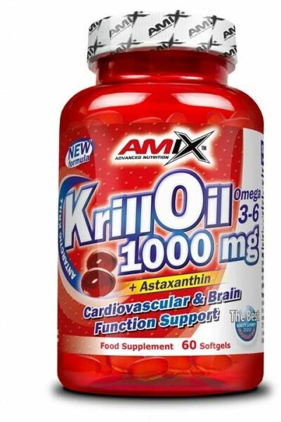 AMIX Nutrition - Krill Oil 1000mg / 60 lágykapszula A Krill egy rákszerű tengeri gerinctelen, a bálnák, ördögráják, óriáscápák tápláléka. A Krillből kinyert olaj esszenciális zsírsavakban, (pl. Omega-3 és Omega-6) gazdag. A Krill olaj nehézfémtől mentes, és a hagyományos halolaj kapszulákénál jobb hatékonyságot tulajdonítanak neki. A lágy gélkapszulának köszönhe