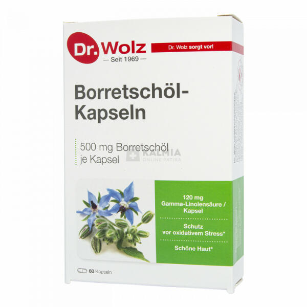 A borágóolaj gondoskodik az egészséges bőről és hatékony zsíranyagcseréről. 60 db-os kapszula; Dr. Wolz termék bőrápoláshoz. A táplálkozástudomány szakemberei megegyeznek abban, hogy túl kevés többszörösen telítetlen zsírsavat, pl. növényi eredetű omega-6 zsírsavat és gamma-linolénsavat, valamint halakból származó eikozapentánsavat (EPA) fogyasztunk. Naponta fog