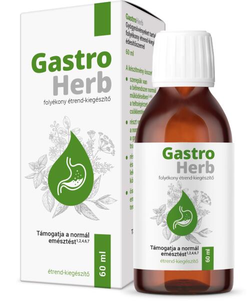 GASTROHERB emésztést segítő csepp 60 ml Gyógynövényeket tartalmazó folyékony étrend-kiegészítő. A készítmény összetevői támogatják a bélrendszer normál működését , szerepük van a teltségérzet és puffadás csökkentésében , részt vesznek a normál emésztésben , a gasztrointesztinális traktus jólétében, a mentális és fizikai fáradtság leküzdésében, a jó