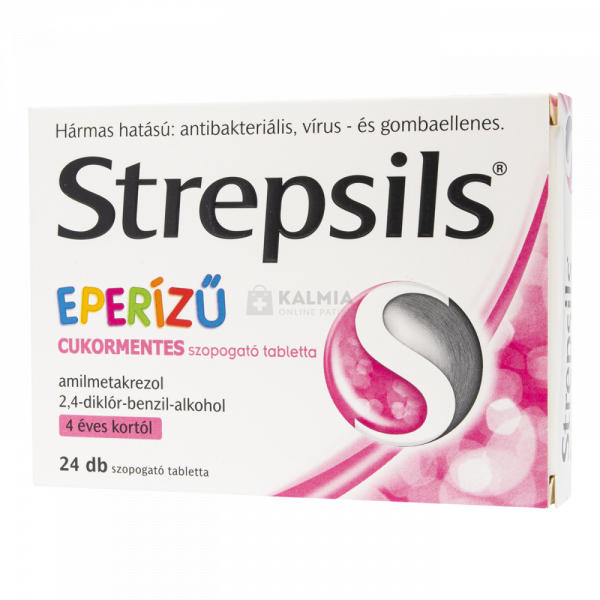 A Strepsils eperízű szopogató tabletta cukormentes, ezért cukorbetegek is használhatják. Már 4 éves kortól szedhető. Szopogatásra szánt eperízű torokfertőtlenítő gyógyszerkészítmény. Hatékonyan alkalmazható a torok-, garat-, mandulagyulladás, fogínygyulladás, szájnyálkahártya-gyulladás kezelésére, valamint a szájüregben végzett műtétek (mandula, fog, stb. ) ut