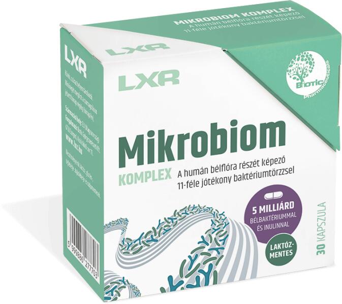 A humán bélflóra részét képező 11-féle jótékony baktériumtörzzsel. A hatóanyagkombináció a bélflóra felépítéséhez hasonló összetettséget és ideális arányokat képvisel. Laktózintoleranciával küzdők is fogyaszthatják. LXR Mikrobiom Komplex kapszula 30x Az LXR MIKROBIOM KOMPLEX 11-féle jótékony baktériumtörzset tartalmaz, melyek megtalálhatók az emberi bélfló