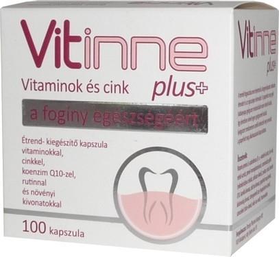 Termékleírás Vitinne plus+ vitaminokkal és cinkkel a fogíny egészségéért. Az A-vitamin hozzájárul a nyálkahártyák normál állapotának fenntartásához. A cink részt vesz az A vitamin normál anyagcseréjében, továbbá a folsavval együtt szerepet játszik a sejtosztódásban. A C-vitamin hozzájárul a megfelelő kollagén képződéshez, ezen keresztül az erek és a fogíny no