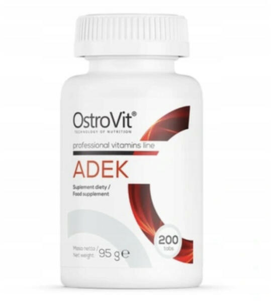 Az OstroVit ADEK egy étrend-kiegészítő, amely zsírban oldódó vitaminok forrása, mint például az A-vitamin, a D-vitamin és az E- vagy K-vitamin. Ez egy átfogó, kiváló minőségű készítmény, amely értékes étrend-kiegészítő. Zsírban oldódó vitaminok forrása - A készítmény 800 ug A-vitamint, 2000 NE D-vitamint, valamint 12 mg E-vitamint és 75 ug K-vitamint tartalmaz. 1