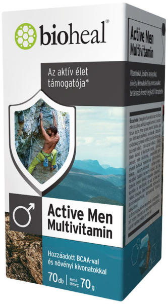 A Bioheal Active Men Multivitamin tabletta komplex összetétellel támogatja az aktív élet mindennapjait. 24 aktív hatóanyagot tartalmaz a férfiak igényeihez szabva, melyek csökkentik a kifáradást, támogatják az immunrendszer működését és hozzájárulnak az egészséges izomfunkció fenntartásához. Az aktív élethez nyújt támogatást az Active Men multivitaminunk, melyet kife