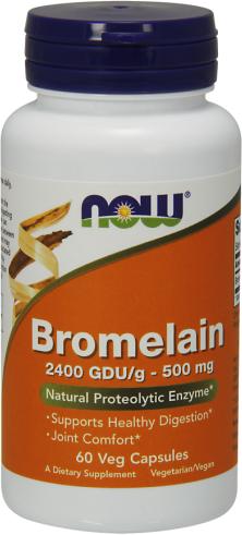 - 2400 GDU/g - Támogatja a tápanyagok emésztését - Gyógyszerészeti tisztaságú ananász kivonat - Segíti a fehérjék emésztését A NOW FOODS BROMELAIN egy gyógyszerészeti tisztaságú ananász kivonat, mely kapszulánként 500mg bromelaint tartalmaz. A bromelain segíti a fehérjék emésztését, emellett erőteljes gyulladáscsökkentő hatásai révén csökkentik a fájdalomérze